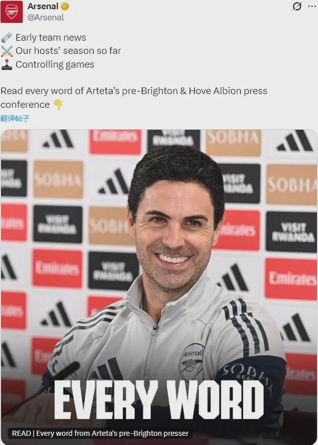 阿尔特塔出席了赛前新闻发布会,我们简单看看相关内容。